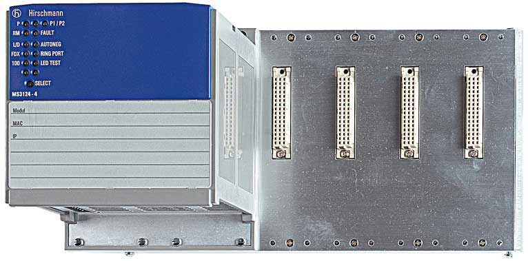 bis zu 24 Ports über Medienmodule realisierbar, 4 Steckplätze